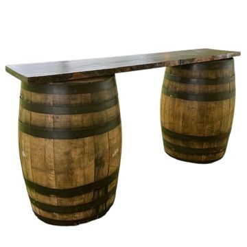 create a bar/dessert table/etc with 2 barrels and a wood slab